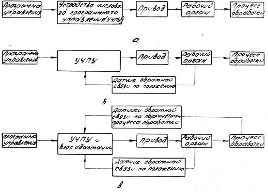 Системы управления вообще, и системы ЧПУ в частности, разделяются на замкнутые и разомкнутые в зависимости от наличия или отсутствия так называемых обратных связей, формирующих поток информационных сообщений о состоянии объекта управления и ходе протекания технологического процесса. В системах управления станками можно выделить главные обратные связи, обеспечивающие требуемый закон управления (формообразование траектории перемещения режущего инструмента), и местные — они обеспечивают улучшенные эксплуатационные характеристики, например, динамические свойства системы — меньшую колебательность, большую точность).