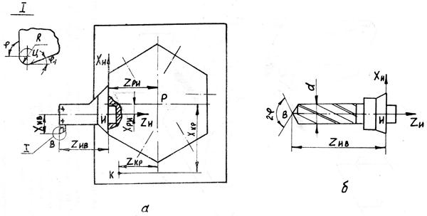 и диаметром d (рис. 12.5,б). Вершина вращающегося инструмента лежит на оси вращения, поэтому для ее задания достаточно указать координату Zиб.