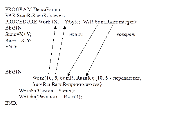 4. Параметры-значения - локальные переменные подпрограммы, стартовые значения которых задаются при вызове подпрограммы из внешних блоков, могут изменять свои значения, но изменения только локальные.