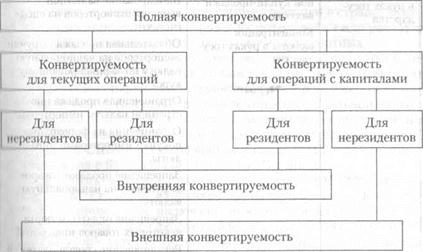 Одной из важных характеристик национальной валюты является степень ее конвертируемости, т.е. обмена национальной валюты на иностранные валюты, которая позволяет товарам и услугам преодолевать национальные границы, а также обеспечивает перелив капитала между различными сегментами мирового валютно-финансового рынка. При классификации валют в зависимости от форм и объемов валютных ограничений выделяют валюты: неконвертируемые (замкнутые), частично конвертируемые и полностью конвертируемые.
