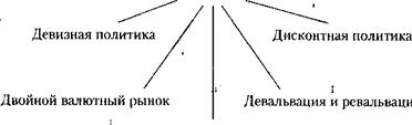 - рыночные инструменты, которые используют регулирующие органы для достижения целей валютной политики, включающие достижение стабильности валютного курса, выравнивания сальдо платежного баланса, формирования достаточного объема золотовалютных резервов.