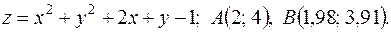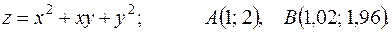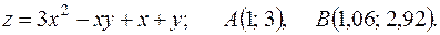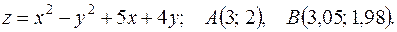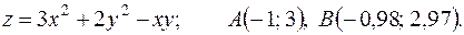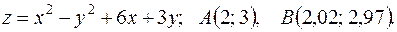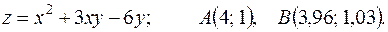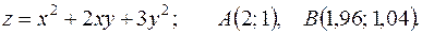 функции в точке А и заменив приращение функции при переходе от точки А к точке В дифференциалом; 3) оценить в процентах относительную погрешность, получающуюся при замене приращения функции её дифференциалом; 4) составить уравнение касательной плоскости к поверхности
