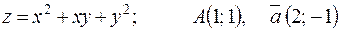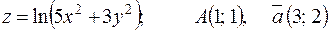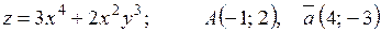 в точке А; 2) производную в точке А по направлению вектора