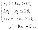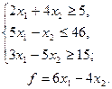 Задача 37. Построить на плоскости область решений системы линейных неравенств и геометрически найти наименьшее и наибольшее значения линейной функции.
