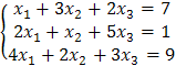 3) Решим систему матричным способом. Для этого введем следующие матрицы и исходную систему запишем в матричном виде.