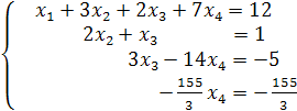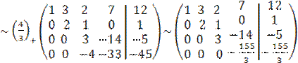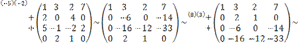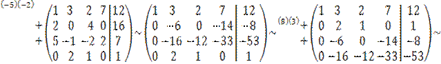 Для удобства вычислений элементарные преобразования будем производить с матрицей