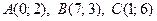 ; 5) точку пересечения высот треугольника; 6) длину высоты, опущенной из вершины