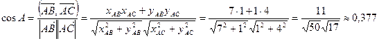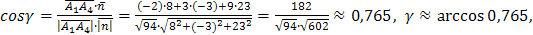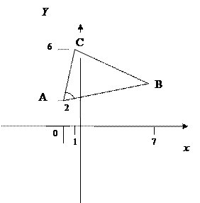 в радианах с точностью до 0,001; 3) уравнение высоты, проведенной через вершину