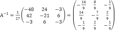 , значит обратная матрица существует. Затем, вычислив к каждому элементу матрицы А алгебраические дополнения, составим из них матрицу