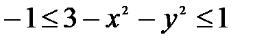 Множество значений x и y, удовлетворяющих первому из указанных неравенств, представляет собой «внутренность» круга радиуса 2 с центром в точке