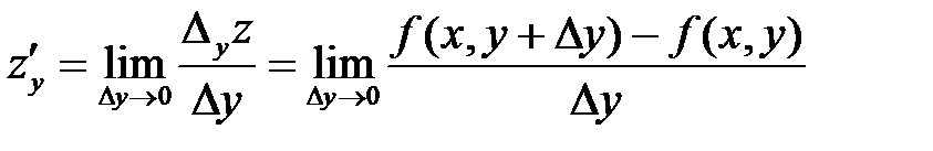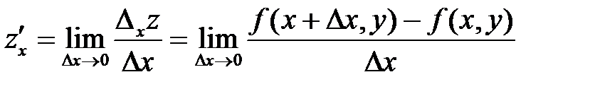 Определение 1. Частной производной функции нескольких переменных по одной из этих переменных называется предел отношения соответствующего частного приращения функции к приращению рассматриваемой независимой переменной при произвольном стремлении последнего к нулю (если этот предел существует).