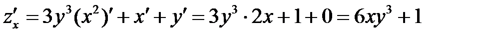 б) Чтобы найти частную производную по x, считаем y постоянной величиной. Таким образом,