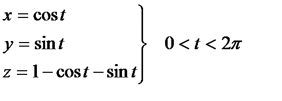 эллипс лежит на плоскости x + y + z = 1, откуда z = 1 - x - y или z = 1 - cost - sint. Следовательно, параметрические уравнения линии L: