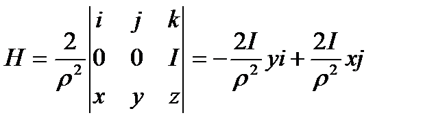 Таким образом, rot Н=0 везде, кроме оси OZ в точках которой последние формулы теряют смысл (знаменатель обращается в нуль), т.е. поле вектора Н является безвихревым всюду вне точек оси OZ.