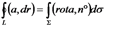 Теорема 6.1. Циркуляция вектора а по замкнутому контуру L равна потоку ротора этого вектора через любую поверхность Σ, натянутую на контур L.