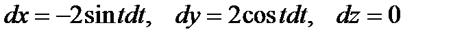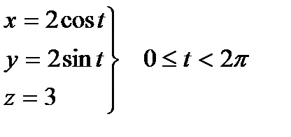 Решение. 1. Контур L – окружность радиуса R=2, лежащая в плоскости z=3 (рис.6.1). Выберем ориентацию на ней как указано на рисунке. Параметрические уравнения линии L:
