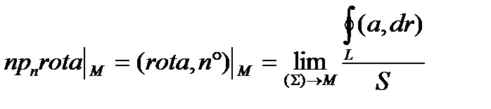 Из теоремы Стокса получаем: проекция вектора rot а на любое направление n не зависит от выбора системы координат и равна поверхностной плотности циркуляции вектора а по контуру площадки, перпендикулярной этому направлению: