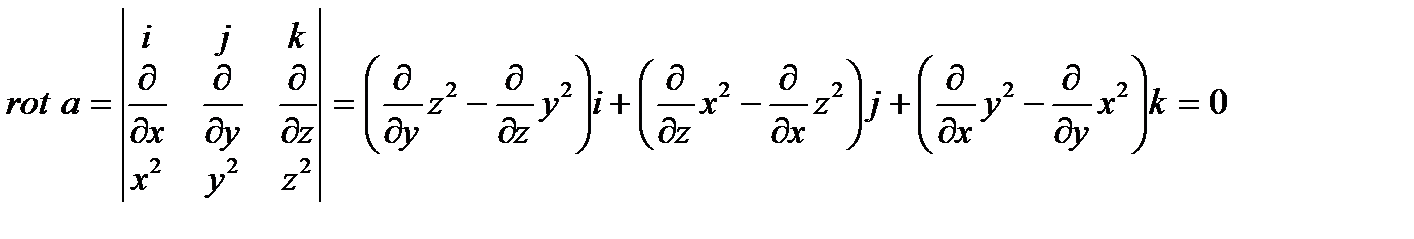 Решение. Координаты P=x2, Q=y2, R=z2 вектора а являются бесконечно дифференцируемыми функциями во всем пространстве, так что а есть бесконечно дифференцируемый вектор, определенный во всем трехмерном пространствe. Имеем