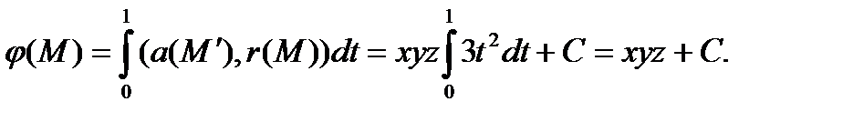 В том случае, когда область Ω является звездной с центром в начале координат О(0, 0, 0), потенциал φ(М) векторного поля а=а(М) в точке М(x, y, z) можно находить по формуле