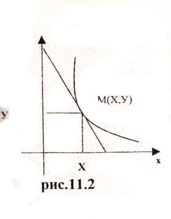 Пример 7.1: Кривая проходит через точку (1;2) и обладает тем свойством, что отношение ординаты любой ее точки к абсциссе пропорционально угловому коэффициенту касательной к этой кривой проведенной в этой же точке с коэффициентом пропорциональности к=3 составит дифференциальное уравнение (рис.11.2).