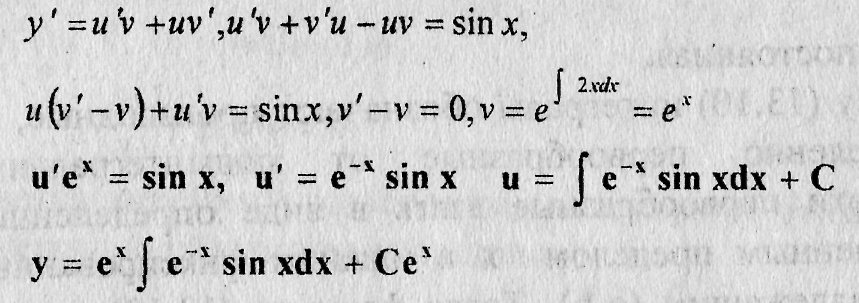 Пример 9.2: Решить уравнение у'-у= sin x. Решение: Здесь р(х) = -1, f(x) = sin х Положим у = uv