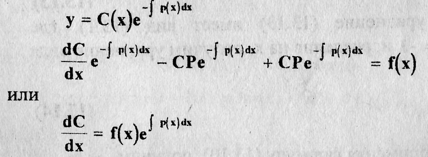 Чтобы найти общее решение уравнения (9.2) мы применим прием, называемый вариацией постоянного. Мы будем пытаться удовлетворить неоднородному уравнению (9.2) решением того же вида (9.15), но будем в этой формуле считать С не постоянным, a известной функцией от х. Подставляя в этом предположении правую часть выражения (9.15) в уравнение (9.2), получим