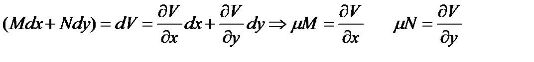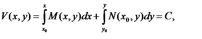 Рассмотрим частный случай, когда левая часть уравнения (10.6) представляет полный дифференциал некоторой функции V(х, у)