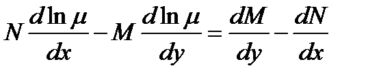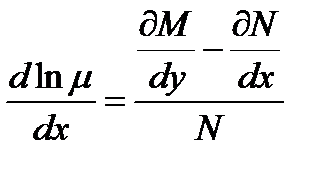 Рассмотрим частный случай интегрирующего множителя, зависящего только от x, когда N=1 в этом случае уравнение имеет вид
