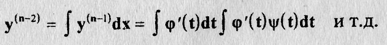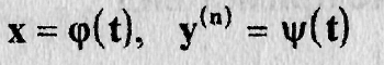 to разрешив его относительно у(п) мы приведем его к виду (11.5). Но иногда удается разрешить это уравнение в элементарных функциях лишь относительно х или, в более общем случае, выразить х и у в функции параметра t, тогда интеграция уравнения (11.5;) может быть сведена к квадратурам, выраженным явно. Пусть параметрические уравнения, эквивалентные уравнению (11.5), суть