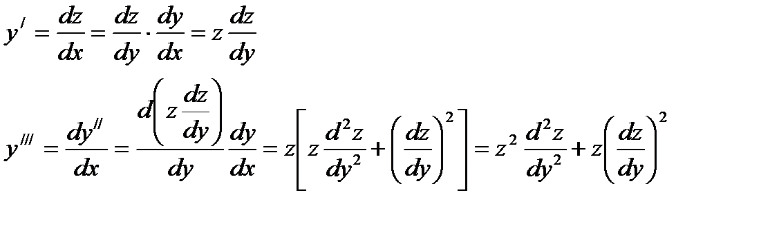 Таким образом,вторая производная от у по х выражается через z и dz /dу, третья производная выражается через z его производные не выше второго порядка. Легко доказать методом полной индукции, что