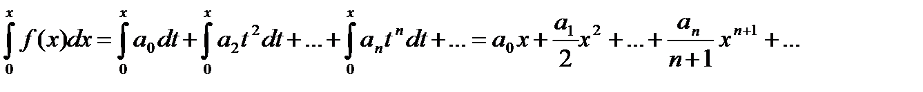 Теорема 19.4. Степенной ряд, полученный в результате почленного интегрирования ряда (19.2) в интервале [0,х], сходится для — R<x<R к соответствующему интегралу от суммы f(x) ряда (19.2).