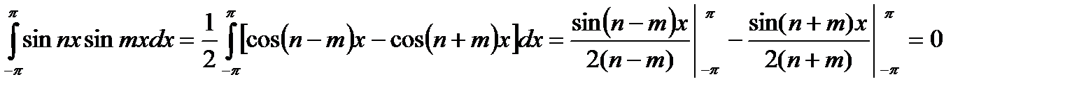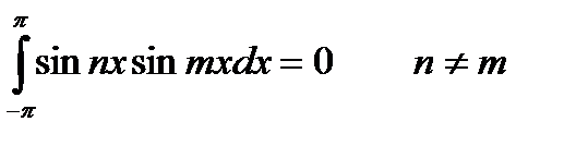 , от произведения двух различных функций входящих в него, равен нулю(это свойство называется ортогональностью системы(22.4)), то есть