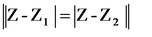 , есть множество точек равноудаленных от точек Z1и Z2 . Следовательно, это уравнение прямой, перпендикулярной отрезку, соединяющему точки Z1 и Z2, и проведенной через его середину.