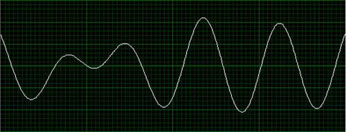 Ниже показан сигнал во временной области, к которому применена формирующая фильтрация. Как показано на этом рисунке, теперь переходы фазы и амплитуды происходят намного более гладко.