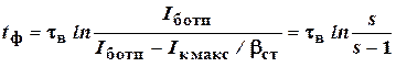 Ток коллектора i к стремится к величине bст I б отп > E к / R к, но достигнув значения I к = E к / R к, он перестает изменяться. Длительность переднего фронта импульса тока I к равна: