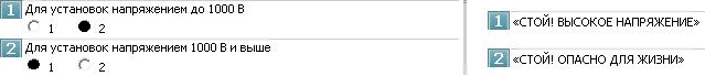 1.При напряжении до 1000 В «СТОЙ! ОПАСНО ДЛЯ ЖИЗНИ»