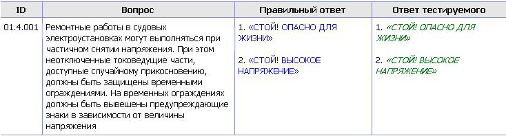 Примечание: В случае ошибочного ответа в отчете появляется ошибка в которой ответ тестируемого и правильный ответ совпадают.