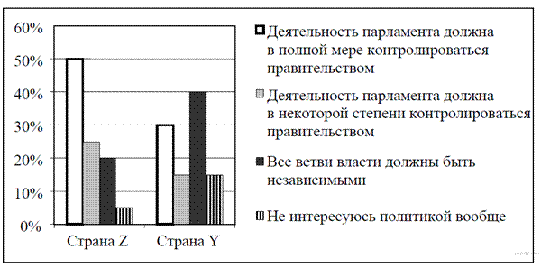 17. Задание 12 № 5824. С начала 2000-х гг. в странах Z и Y проводились реформы государственной власти. Социологической службой был проведён опрос совершеннолетних граждан обеих стран. Им задавали вопрос: «Как Вы считаете, должна ли деятельность парламента контролироваться правительством?»