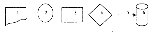 (Источник: В5 7850: часть 2:1992): 1 - описание документа, 2 - начало и конец этапа,3 - описание деятельности, 4 - принятие решения, 5 -указание направления потока от одного этапа работы к другому, 6 - описание базы данных.