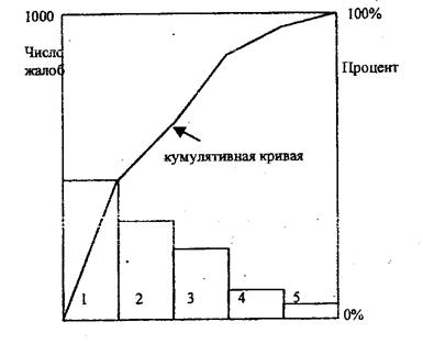 Рис. 1.4. Диаграмма Парето:1 - шум наличии. 2- разрыв линии, 3 - тревога, 4 - не отвечает, 5 - нет звонка
