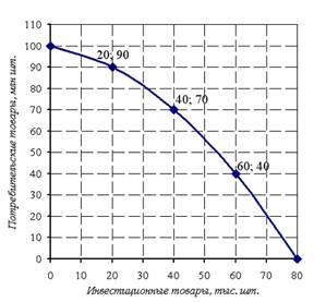 Экономика некоторой страны находится на границе своих производственных возможностей, которые отражены на графике:
