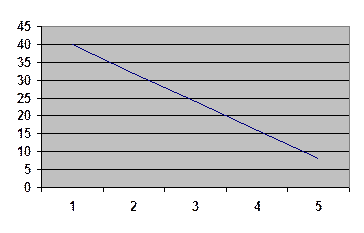 На графике мы видим снижение предельного дохода с 40 ден. ед. до 8 ден. ед.