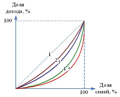 | C | | увеличению коэффициента Джини и отдалению кривой Лоренца от биссектрисы | |