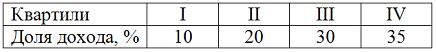 В таблице представлено распределение суммарного дохода по четырем 25-процентным группам семей – от самой бедной до самой богатой.
