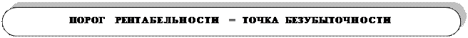 | ПОРОГ РЕНТАБЕЛЬНОСТИ | = | ПОСТОЯННЫЕ ЗАТРАТЫ | : | ВАЛОВАЯ МАРЖА В ОТНОСИТЕЛЬНОМ ВЫРАЖЕНИИ К ВЫРУЧКЕ |