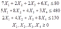Обозначим через X1, X2, X3,X4 объемы производства соответствующего вида продукции (количество изделий каждого вида).