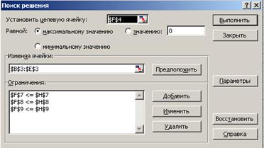 На экране появится диалоговое окно Поиск решения с введенными условиями.