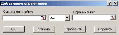 · указатель мыши на кнопку Добавить → М1. На экране вновь диалоговое окно Добавление ограничений;