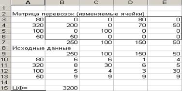 В результате решения получен оптимальный план перевозок (рис. 4.3):
