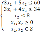 Запишем задачу линейного программирования в стандартной форме с требованием целочисленности.